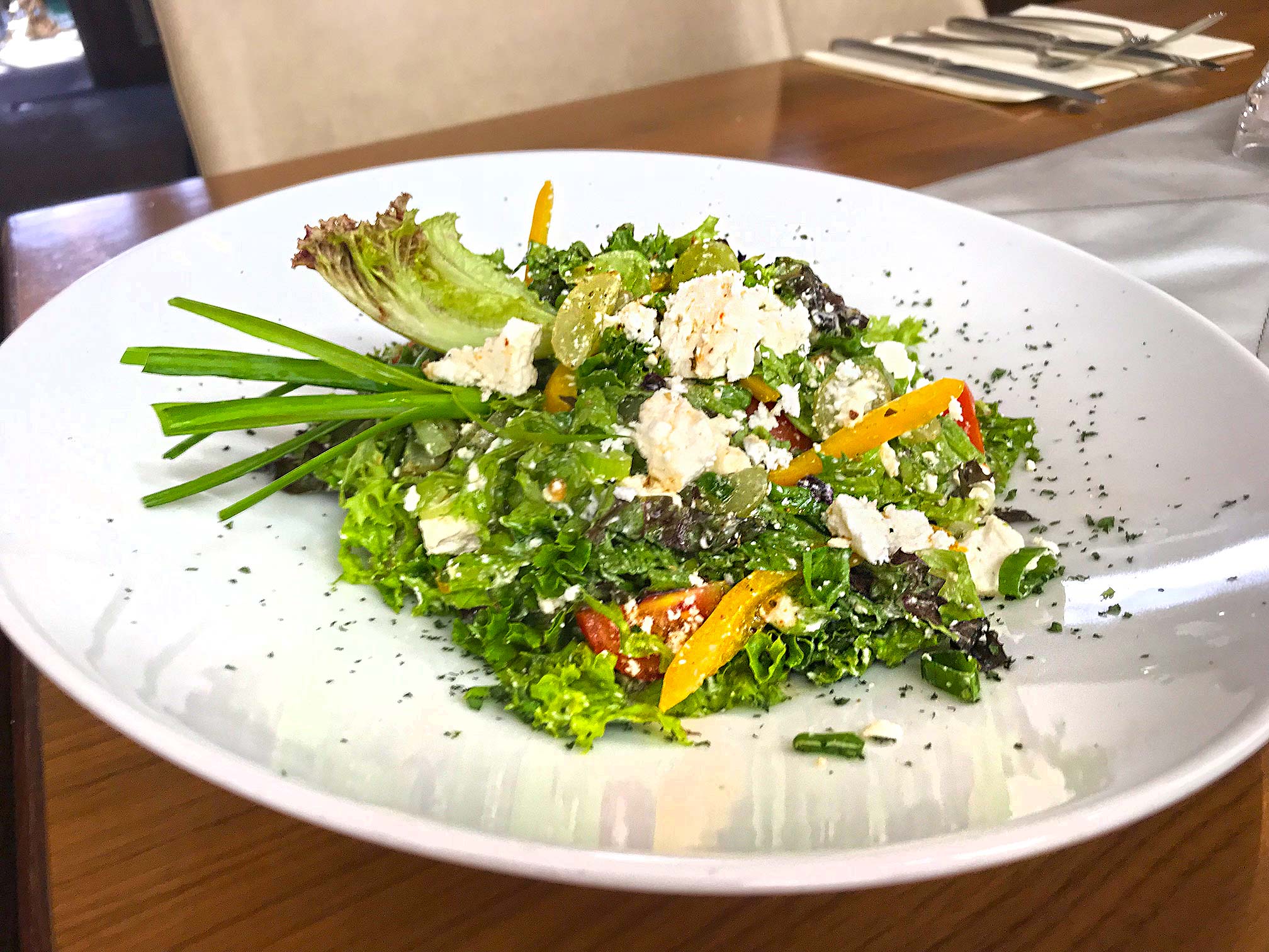 702. Bunter Sommersalat – Grüner Salat/ Weintrauben/ Hüttenkäse/ Vinaigrette