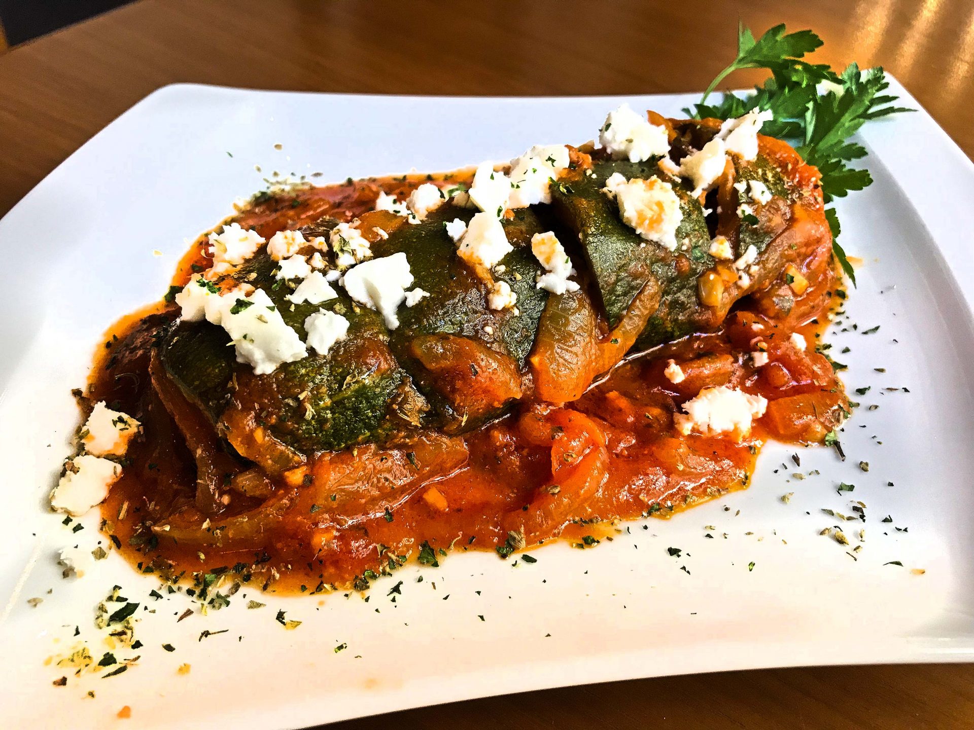 703. Gefüllte Zucchinis – Rinderhackfleisch/ Feta/ Tomatensauce